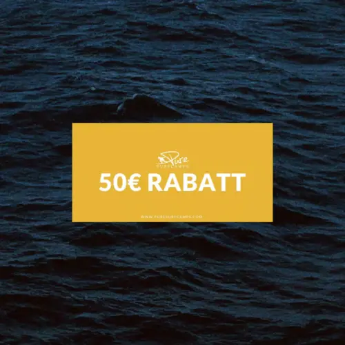 1. 50 € Rabatt auf deinen nächsten Surfurlaub bei Puresurfcamps