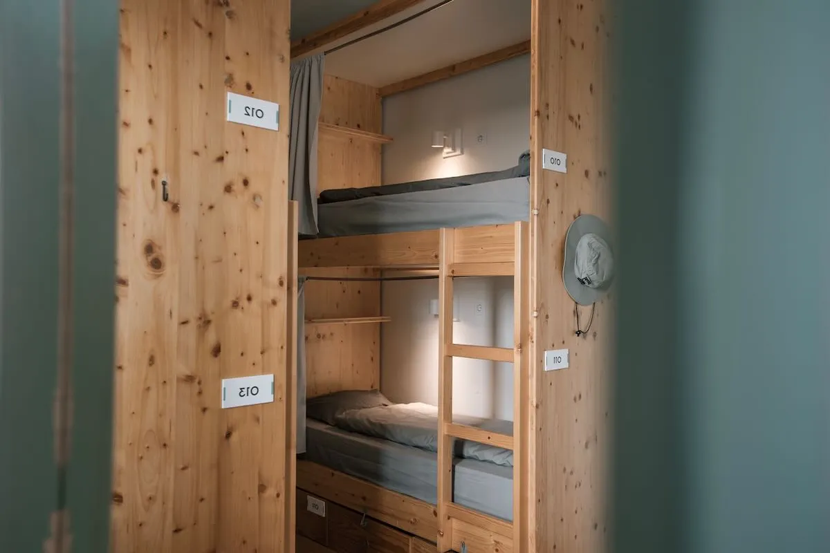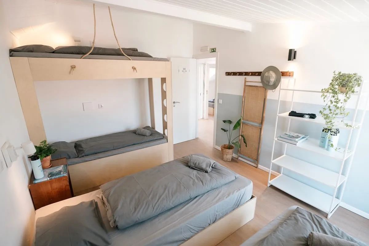 Die günstigste Option im Surfbase Lissabon: Mehrbettzimmer mit komfortablen Matratzen, Bettwäsche & Zugang zu Gemeinschaftsbädern.