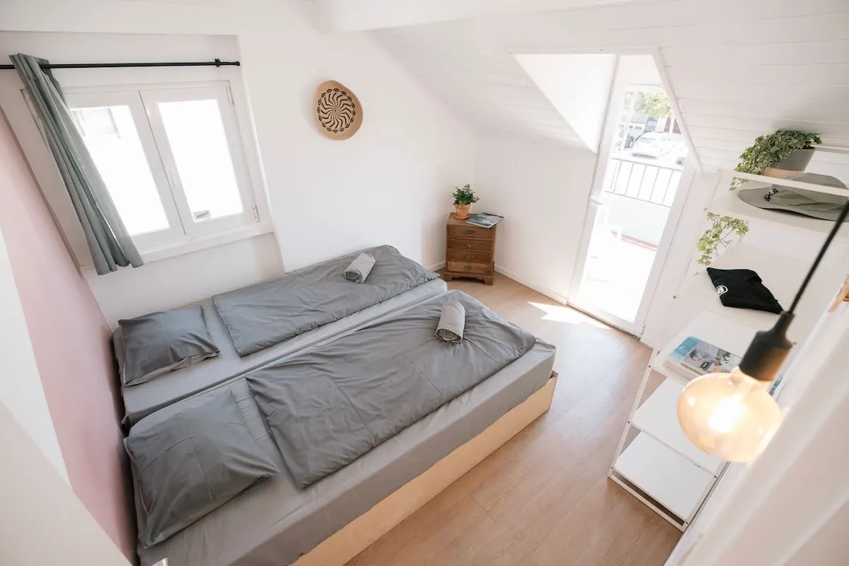 Mit maximal 17 Gästen herrscht hier eine familiäre Atmosphäre, die perfekt für Solo-Traveller und Freunde ist, die echte Surfcamp-Vibes in festen Unterkünften suchen. Dank der flexiblen Anreise lässt sich dein Trip ganz einfach mit einem Besuch im nur 20 Minuten entfernten Lissabon kombinieren.